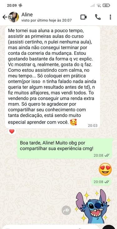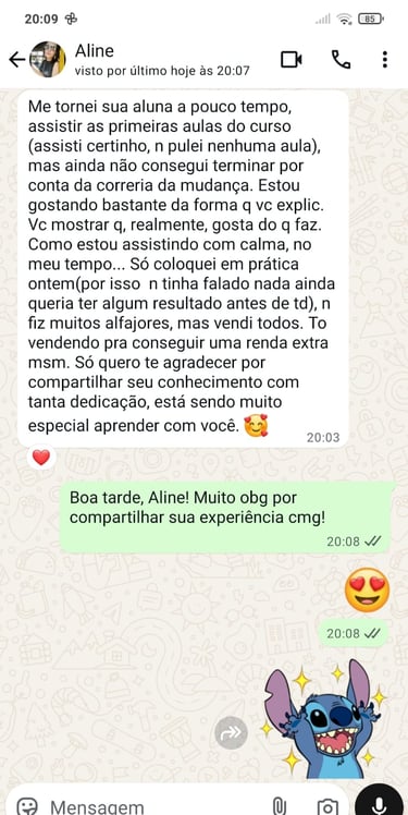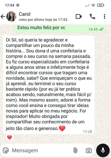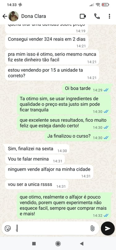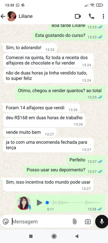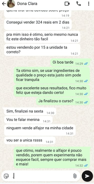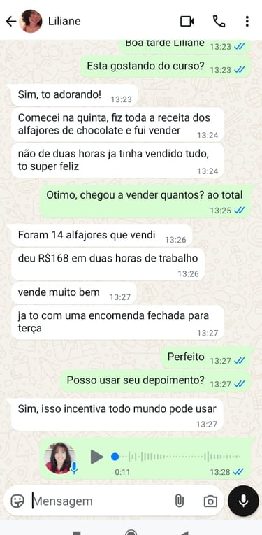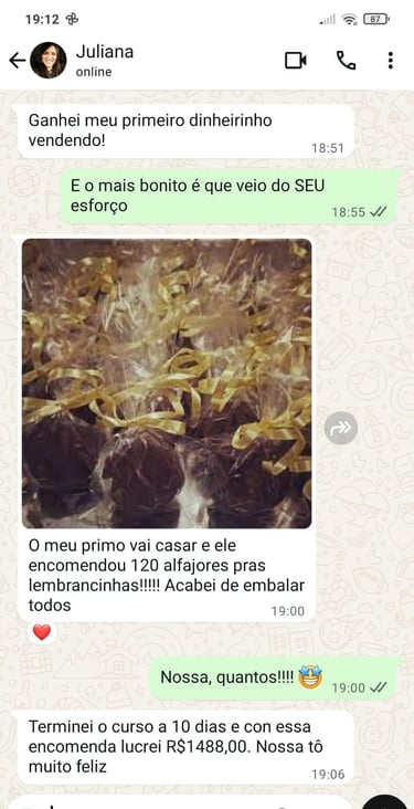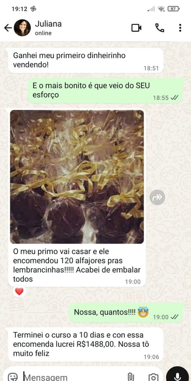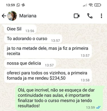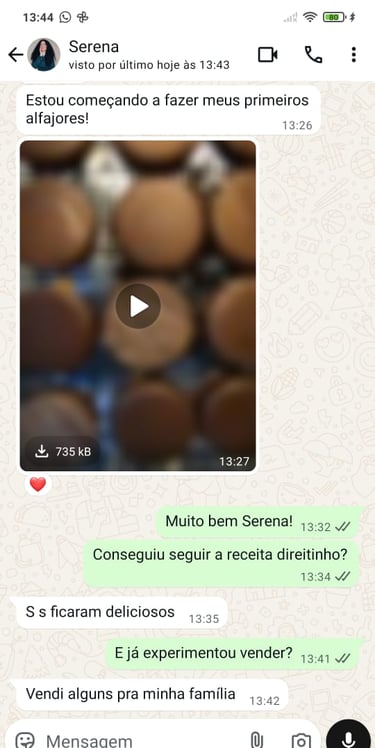 O curso me ensinou a fazer alfajores autênticos e agora estou vendendo mais de R$5000 por mês. Recomendo a todos que querem empreender na cozinha.