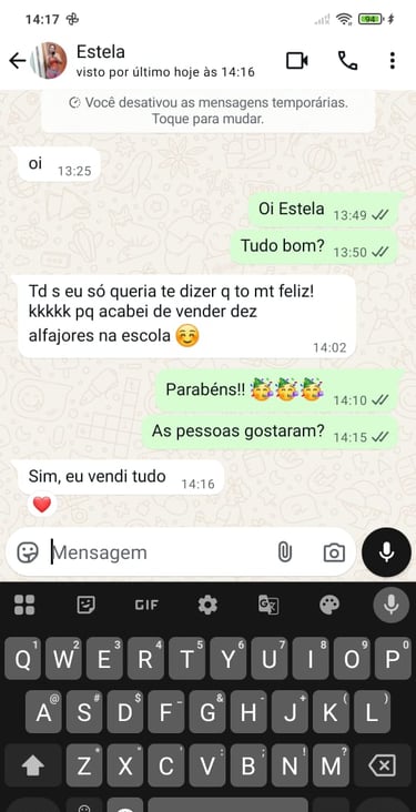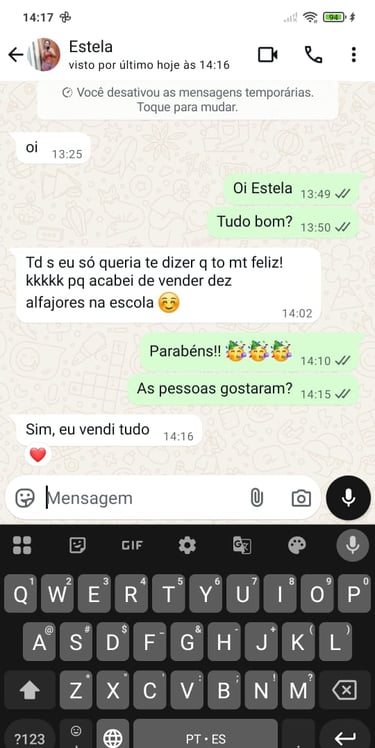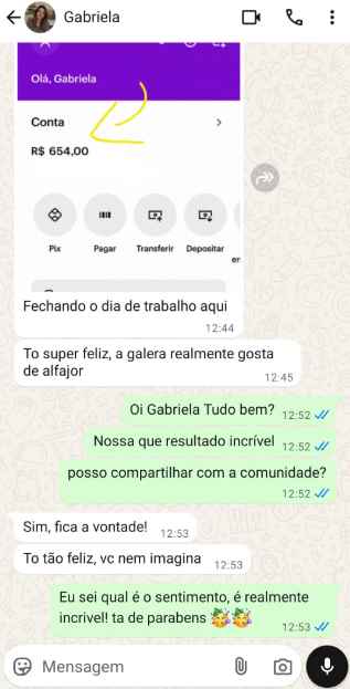 Comecei vendendo na rua, de forma simples, mas cheia de propósito. Em apenas um mês, alcancei um feito que parecia impossível: faturei mais de R$ 5.354, o que me possibilitou escalar a operação e hoje trabalhar apenas pela internet.